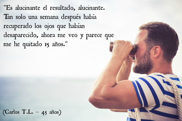 Es alucinante el resultado, alucinante. Tan solo una semana después había recuperado los ojos que habían desaparecido, ahora me veo y parece que me he quitado 15 años, tengo los ojos grandes, despejados, ya no me pesan los párpados.